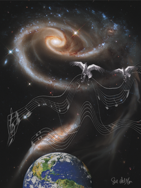 Pegusii soar on the currents of the vibration of Beethoven’s “Ode to Joy”, through the cosmos, to the portal of the material world.